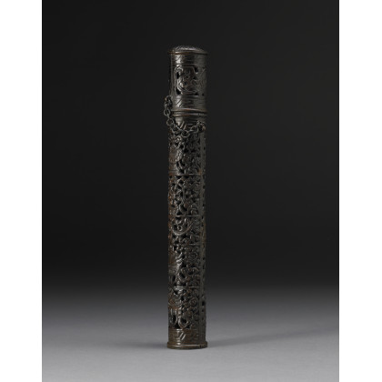A bronze document holder with carved and pierced floral decoration China/Tibet, 19th/20th century Length 31 cm
