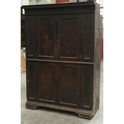 Antica credenza emiliana da incasso in noce a quattro ante riquadrate, piedi a mensola ( cm 138x195x56)(difetti)