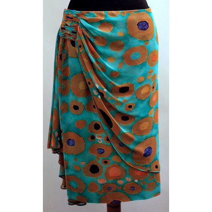 Valentino Boutique: gonna in seta verde con motivo a pavone, taglio asimmetrico, tg 12