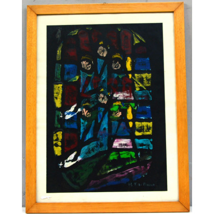 "Composizione", tempera su cartoncino (cm 49x35) firmato e datato in basso a destra, in cornice (lievi difetti)