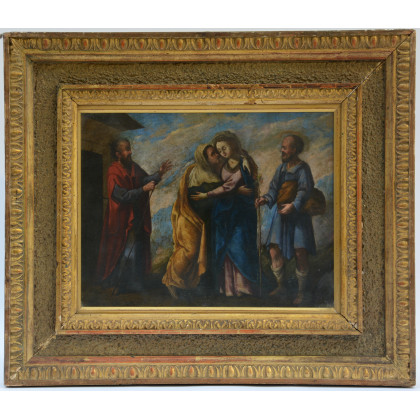 Scuola del sec. XVIII "Scena biblica" olio su tavola (cm 30x39) In cornice