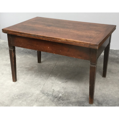 Tavolo in noce con piano a libro, gambe dritte, inizio del secolo XIX (cm 130x82x87)(difetti e restauri)