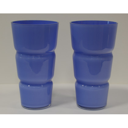 Lotto composto da due vasi segmentati in vetro di colore azzurro (h cm 30,5)