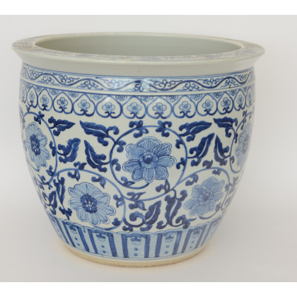 Cache pot in porcellana bianca e blu decorata a motivi vegetali Cina, sec. XX (diam. 47 cm.)