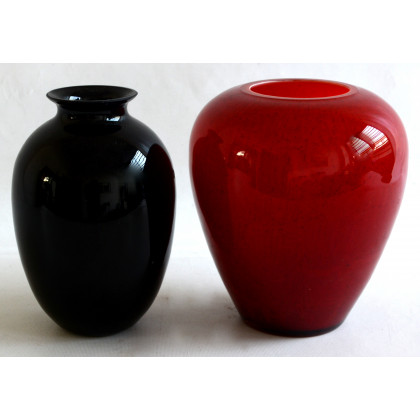 Lotto composto da due vasi in vetro colorato rosso e nero, misure diverse (lievi difetti)
