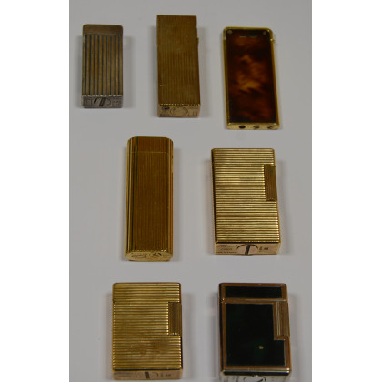 Lotto composto da sette accendini placcati oro e metallo (difetti)
