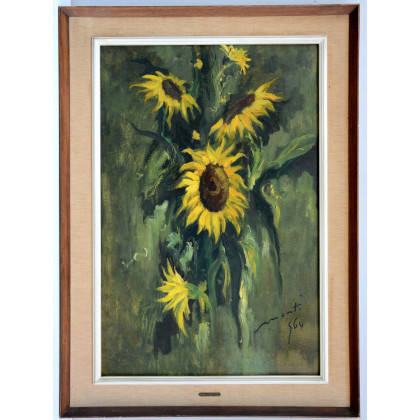 "I girasoli", olio su tela (cm 90x60), firmato e datato in basso a destra, in cornice (difetti)