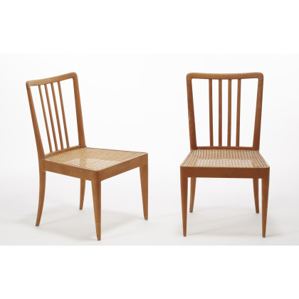 Couple of wooden chairs. Italy, late 1930s (cm 45x77x44) (defects) Provenance: Ca' del Fogher, Cortina d'Ampezzo, 1936, designed by Pier Giulio Magistretti