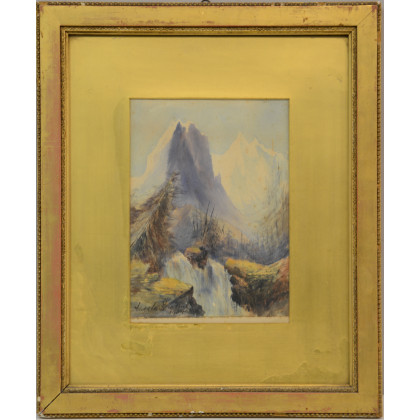 Firma indecifrata "Swedish Waterfall" Acquarello su carta (cm 26x19). Firmato e datato 1904 in basso a sinistra.
