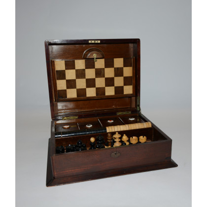 Scatola da gioco con scacchiera, scacchi e porta carte decorati con semi e smalto