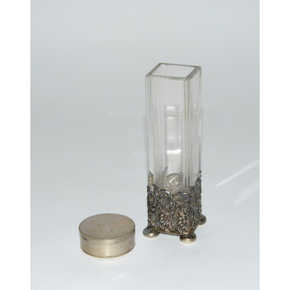 Lotto composto da una bomboniera e un bicchiere con base in argento