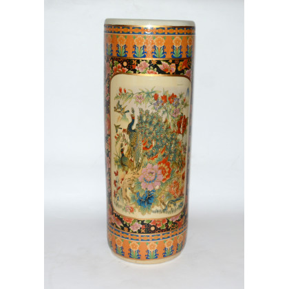 Vaso portaombrelli in porcellana policroma con decorazione di pavone con fiori, Giappone, sec. XX (h cm 60) (difetti)