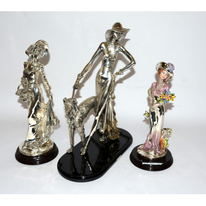 Lotto di tre sculture raffiguranti figure femminili (h max cm 45) (lievi difetti)