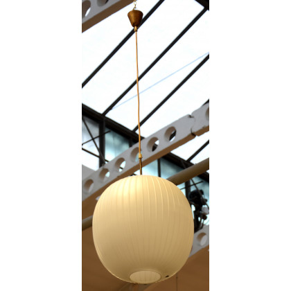 Lampada a sospensione in vetro incamiciato lattimo e satinato. Italia, fine anni 60 (lievi difetti)