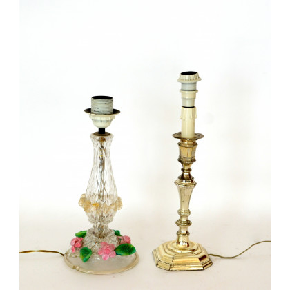Lotto composto da una lampada da tavolo in vetro con applicazioni floreali in pasta vitrea e una in metallo argentato (difetti)