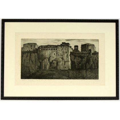 "Orvieto", acquaforte (battuta cm 21x41) firmato e titolato a lapis, in cornice (difetti)