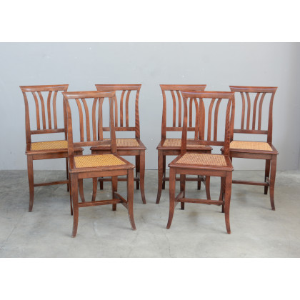 Gruppo di sei sedie con schienale a giorno e gambe sagomate