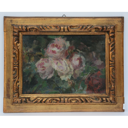 "Rose" 17.6.23 olio su tela ripiegata su due lati (cm 26x36) Firmato e datato in basso a sinistra. In cornice