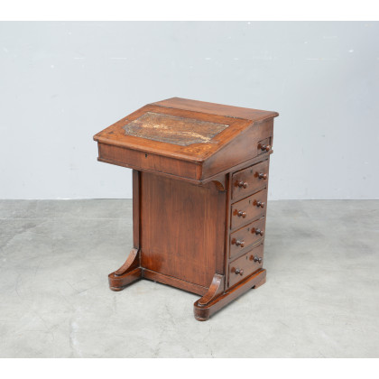 Davenport in noce con piano filettato ed inserto in pelle (cm 51x72x51) (difetti)