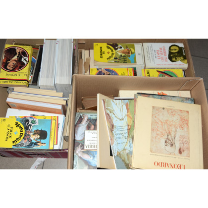 Lotto composto da 4 cartoni contenenti numerosi volumi di diverso argomento, fra cui romanzi e libri d'arte.