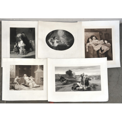 Gruppo di 5 stampe in bianco e nero, raffiguranti bambini in diverse occasioni (misure diverse) (lievi difetti).