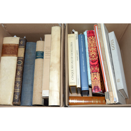 Lotto di due cartoni contenenti numerosi volumi di epoche e argomenti differenti, fra cui arte e arti applicate.