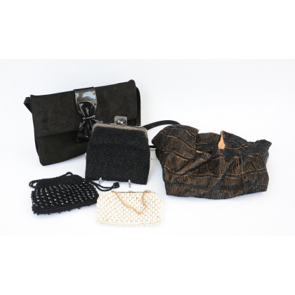Lotto composto da tre borsette da sera, una borsa e un vestito di fatture diverse (difetti)