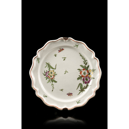 A round majolica dish. Faenza, 18th century (d. cm 20,5) (wear)