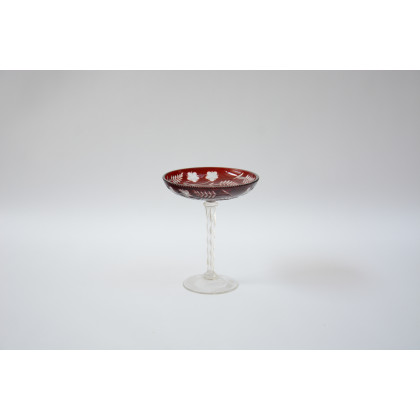 Manifattura di Boemia, alzatina in vetro con coppa incamiciata a decoro floreale e fusto a torchon (h cm 20,5)
