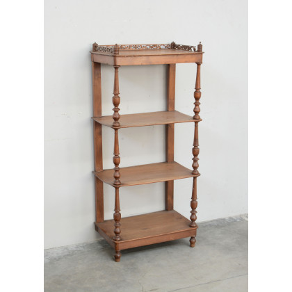 Etagère a quattro ripiani con montanti a colonne tornite e ringhiera traforata. Sec. XIX (cm 56x123x35) (difetti e mancanze)