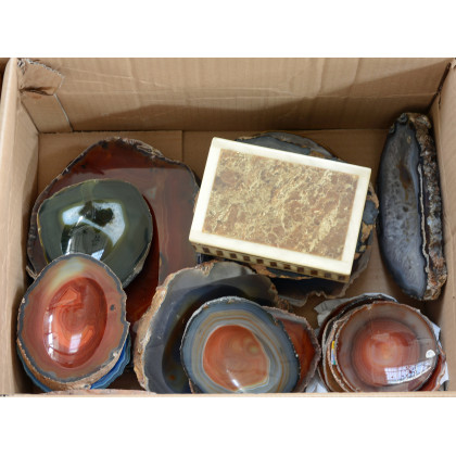 Cartone contenente diversi oggetti in pietra dura (rotture)