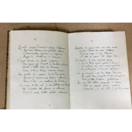 TESTA, Francesco. La Culeide. Sonetti 100. Sec. XVIII. Manoscritto cartaceo (cc. I, 1-2 (16), 3 (18), I'; 169 x 120mm). Scrittura settecentesca (fioriture e leggere gore di umidità). Legatura ceova in cartone, con al dorso etichetta in pelle rossa con indicazione di autore e titolo.