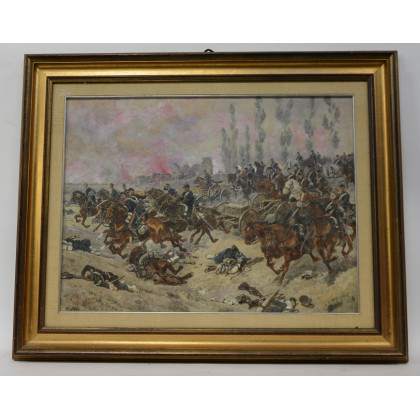 Maestro del sec. XIX "La ritirata" acquarello (cm 50x65) reca firma De Albertis in basso a sinistra, in cornice (difetti) al retro autentica di Schettini.