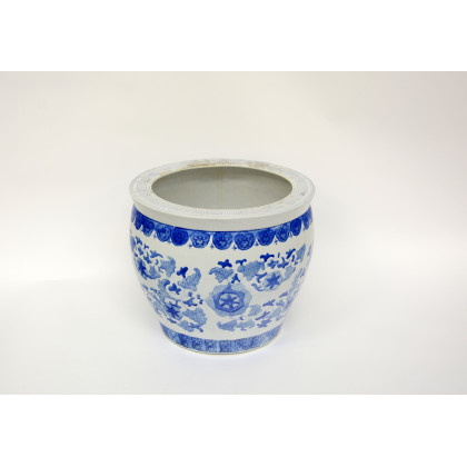 Portafiori in porcellana bianca e blu, Cina sec. XX (d cm 41) (lievi difetti)