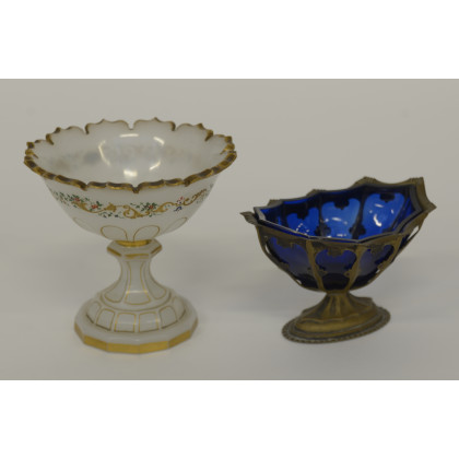 Lotto composto da un'alzatina in opaline e una in metallo argentato con vaschetta in vetro (difetti)