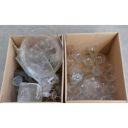 Lotto di due cartoni contenenti numerosi oggetti per la tavola in vetro (difetti)