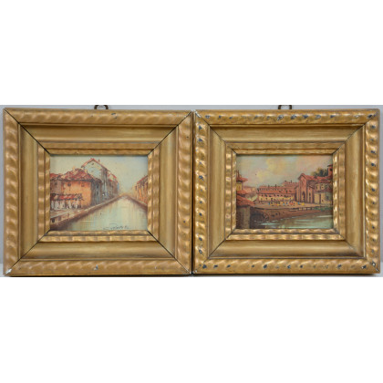 Ignoto "Scorci del Naviglio" coppia di olii (cm 10x13) in cornici