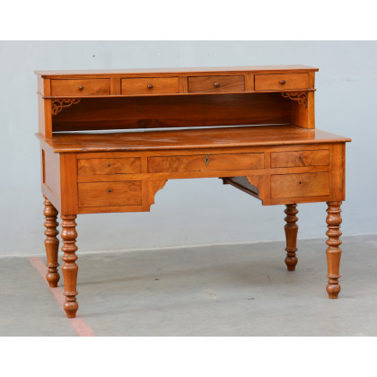 Scrittoio con alzata, parte superiore a quattro cassetti in linea e vano a giorno, parte inferiore a quattro cassetti. Piedi torniti, fine sec. XIX (cm 140x108x73) (difetti e restauri)