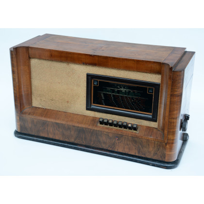 Radio con cassa in noce marcata Philips, anni '30 circa (cm 73x42x28) (difetti)