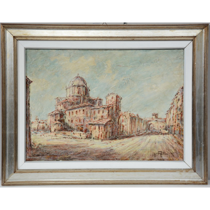 "S. Lorenzo a Milano" olio su tela (cm 50x70) firmato in basso a destra e iscritto al retro, in cornice