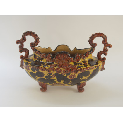 Manifattura C.A.S. Centrotavola in terracotta maiolicata dipinta in policromia. Savona, anni '30. Marcato sotto la base con il monogramma della manifattura e il numerale 44. (l cm 45,5) (difetti, restauri e mancanze)