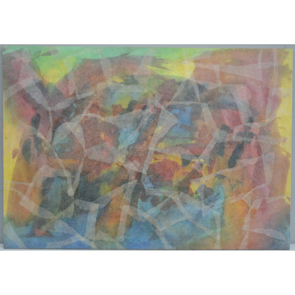 "Cosmogonia - L'evento del grande lago" tecnica mista su tela (cm 70x100) firmato e titolato al verso, in cornice