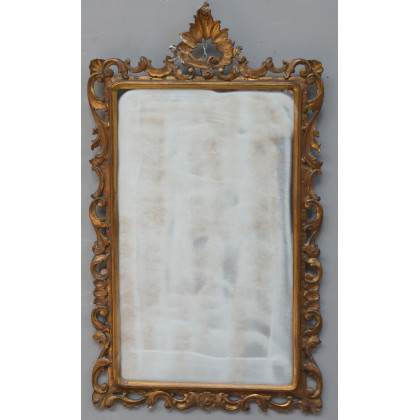 Specchiera in legno intagliato e dorato a decoro rocaille (cm 78x135) (difetti e mancanze)