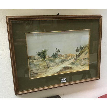 "Paesaggio" olio su compensato (cm 20x29) firmato in basso a destra e iscritto al retro, in cornice