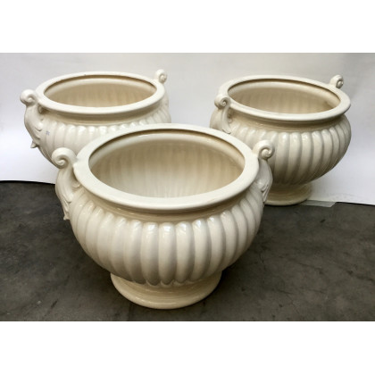 Gruppo di tre cachepot biansati in ceramica bianca (difetti)