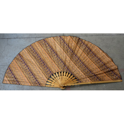 Ventaglio con stecchi di bambù e pagina con tessuto stampato a motivi batik profilati in oro. Indonesia secolo XX (cm 174x94) (lievi difetti)