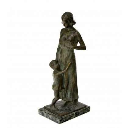 "La mamma" scultura in bronzo (h. cm 35) poggiante su base in marmo Verde Alpi. Firmata e titolata alla base