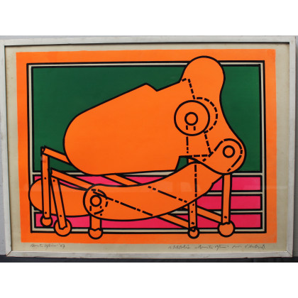 "Senza titolo" 1967 litografia a colori - prova d'artista cm 56x75 firmata, datata, dedicata e iscritta in basso a matita. In cornice (difetti)