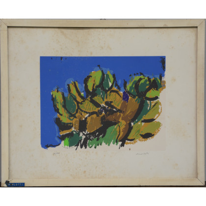 "Senza titolo" serigrafia a colori cm 40x50 numerata 10/100 e firmata in basso a matita. Timbri al retro della Galleria d'Arte Vinciana, Milano. In cornice (difetti)