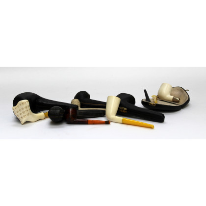 Lotto composto da cinque pipe di epoche e materiali diversi. In custodie (difetti)